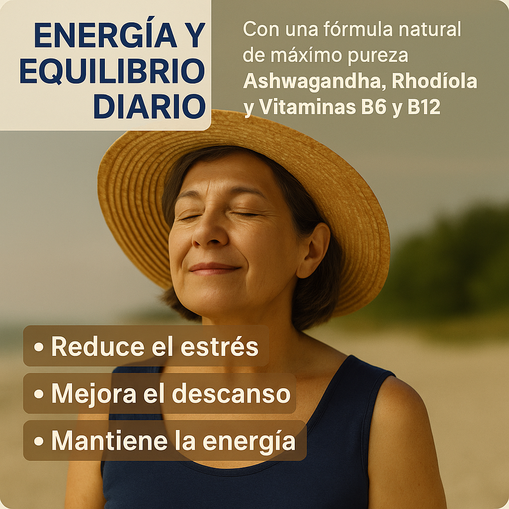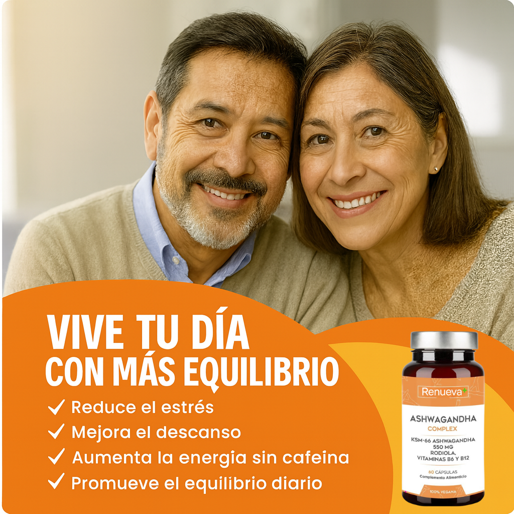 El estrés prolongado y la falta de sueño pueden elevar el cortisol y afectar tu equilibrio natural.Renueva+ Ashwagandha Complex con Ashwagandha KSM-66, Rhodiola y Vitaminas B6 + B12 ayuda a reducir los niveles de cortisol, promover un descanso profundo y mantener una mente tranquila. Ideal para quienes buscan energía estable, enfoque y bienestar sin cafeína. ✨